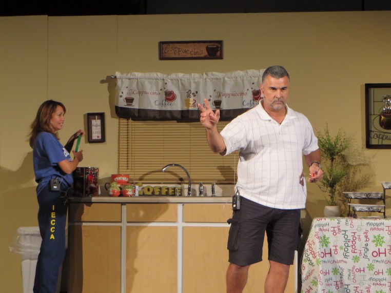 Our play is about a puertorrican family that lives in US and every year they get together with friends that lives here too, but they are from another country. They get together to celebrate Christmas bringing something to share from their country with everybody on a karaoke night.