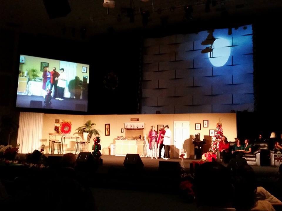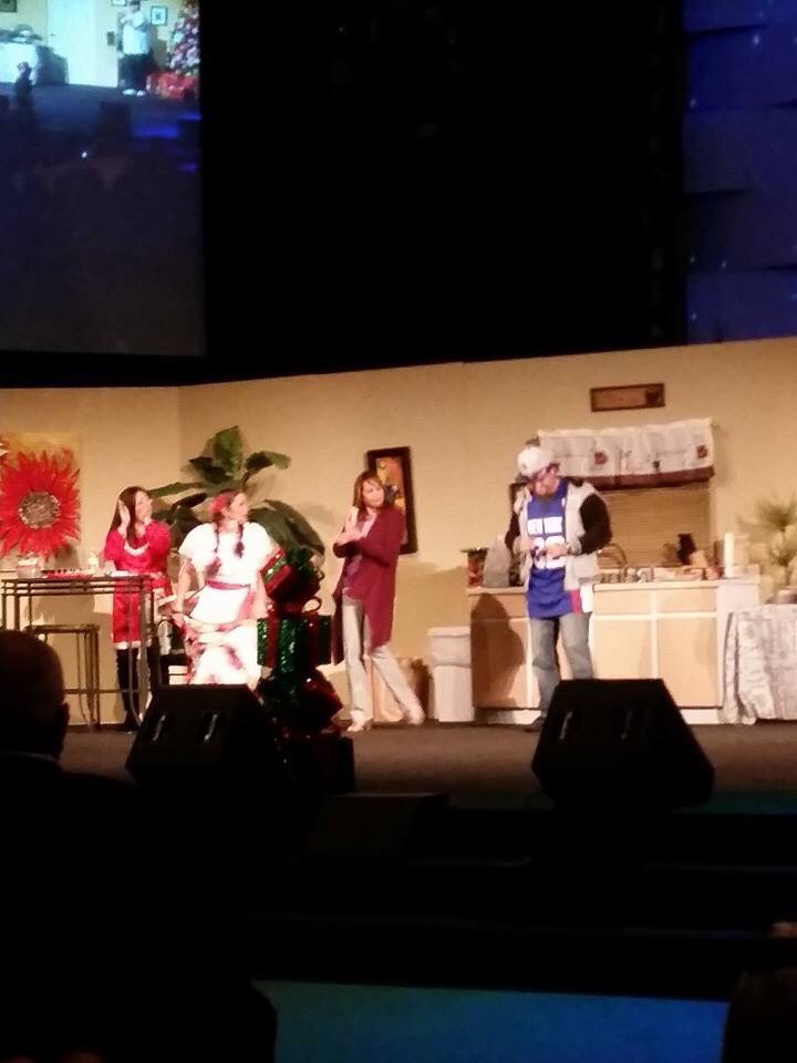 Here are more pictures of the actual play. I didn’t take these pics, I was directing the play and is impossible for me to be doing so many things at the same time while the play is running. But at least you can see how many people we had on stage in one presentation. We had some singing, dancing, acting, kids, youth, the choir and much more, all of that we a touch of comedy.
