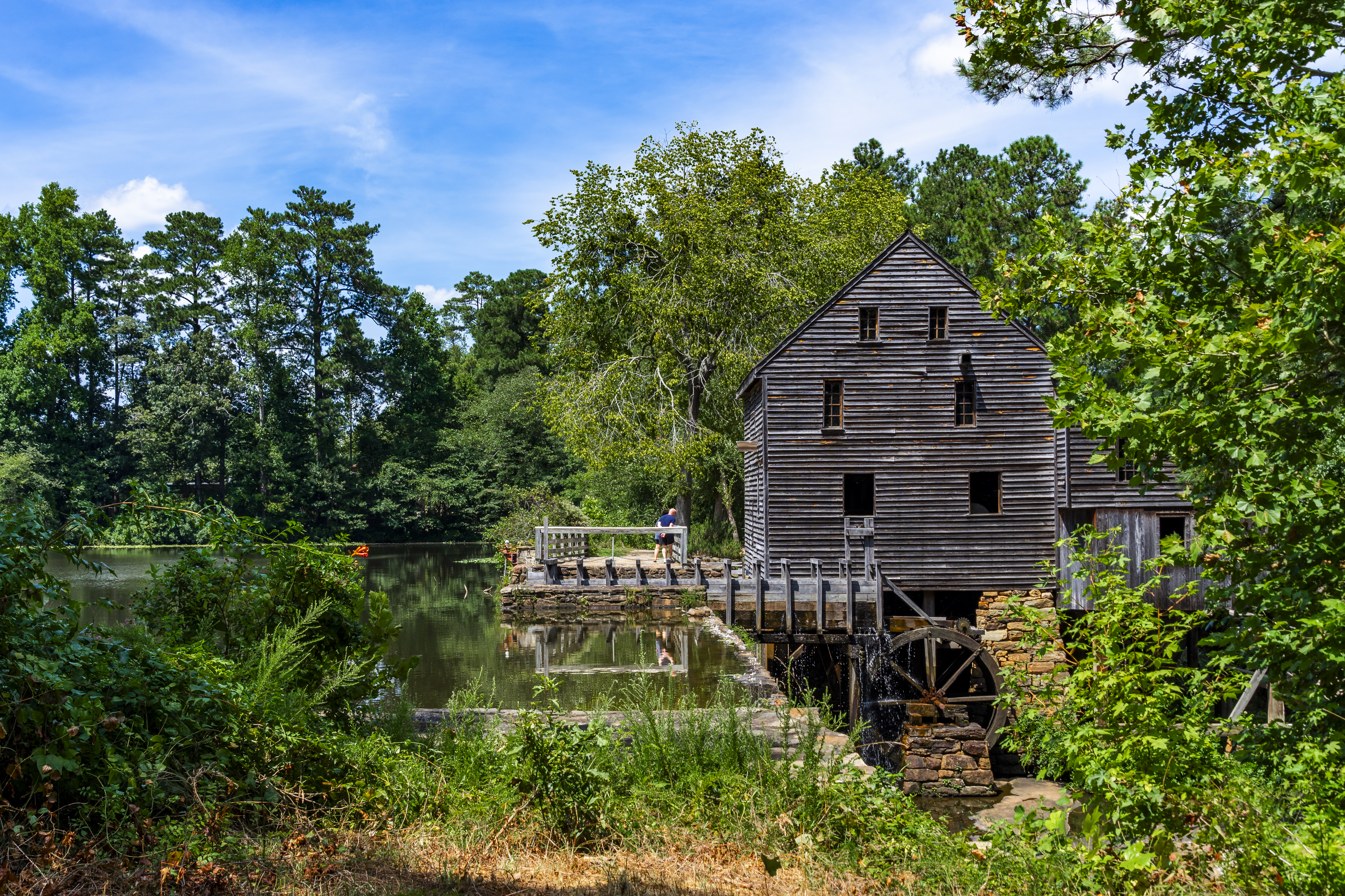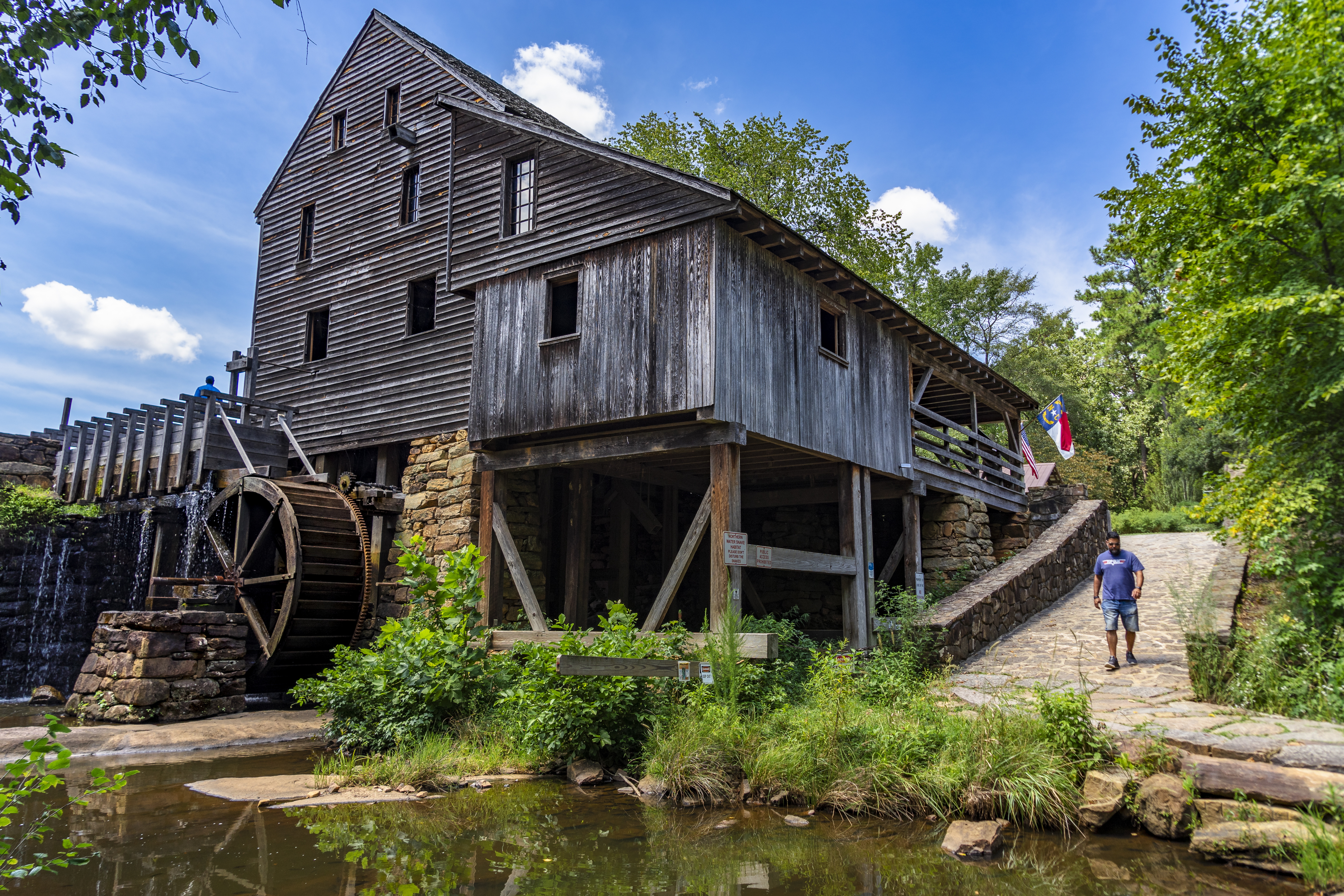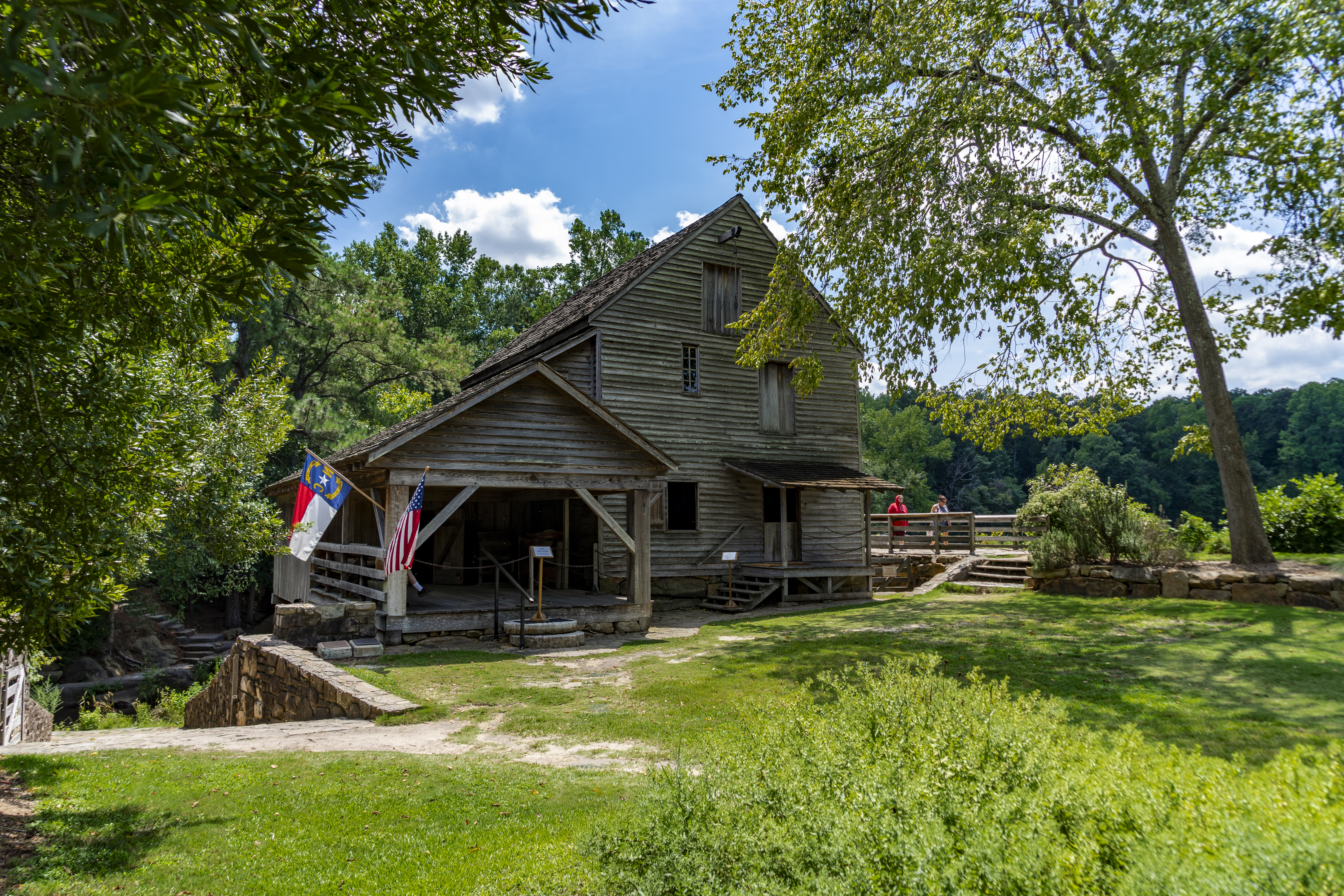 The Historic Yates Mill is an operable grain mill established around 1756. The equipment in the mill is original, left after the Lea family ceased, milling operations in the mid-1950s, now they offer tours and demonstrations.