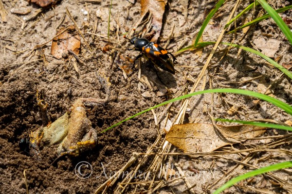 I had never seen this kind of beetles. I saw them burying a dead frog on the middle of a dirt path. I got curious and took some pictures and then look information about them. So to make the explanation short, they bury small dead animals to use as food source for their larvae to... Continue Reading →